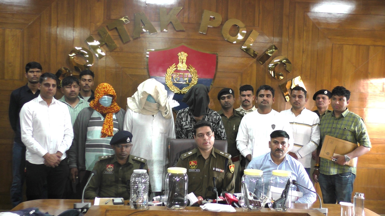 रोहतक पुलिस की टीम ने गांव पोलंगी मे हुये दोहरे हत्याकांड की वारदात को हल करते हुये वारदात मे शामिल रहे आरोपी पिता-पुत्र को गिरफ्तार करने मे सफलता प्राप्त की है। आरोपियो को पेश अदालत किया गया है। अदालत के आदेश पर आरोपियो को तीन दिन के पुलिस रिमांड पर हासिल किया गया है। मामले की गहनता से जांच की जा रही है। पुलिस अधीक्षक श्री सुरेन्द्र सिंह भौरिया ने प्रेसवार्ता को संबोधित करते हुये बताया कि दिनांक 13.02.2026 को पुलिस को सूचना मिली की गांव पोलंगी मे दो व्यक्तियो की हत्या हुई है। पुलिस टीम ने तुंरत मौके पर पहुंचकर जांच शुरु की। मृतक युवको की पहचान कर्मबीर व कुलदीप पुत्रान जयनारायण निवासी पोलंगी के रुप मे हुई। मृतक युवको के भाई जगमेन्द्र की शिकायत के आधार पर थाना आईएमटी मे धारा 190, 191(3), 103(1), 115(2), 126, 333, 351(2) के तहत अभियोग संख्या 34/2026 अंकित कर जांच शुरु की गई। प्रारंभिक जांच मे सामने आया कि जगमेन्द्र 06 भाई है जिनमे से किसी कारण 03 भाईयो की पहले मौत हो चुकी है। जगमेन्द्र अपने भाई कुलदीप व कर्मबीर के साथ रहता है। साल 2024 मे गांव के ही सन्नी ने जगमेन्द्र व उसके भाई कर्मबीर पर ट्रैक्टर से टक्कर मारी थी। जिस संदर्भ मे जगमेन्द्र व उसके भाई कर्मबीर ने थाना आईएमटी मे मामला दर्ज करवा हुआ है। जिस कारण सन्नी के परिवार वाले जगमेनद्र व उसके भाईयो से रंजिश रखने लगे व मामला वापिस लेने के लिये कई बार धमकी दी। दिनांक 13.02.2026 को जगमेन्द्र बाहर से अपने घर पहुंचा तो गांव के रणधीर, मनोज, दिनेश, अमित, सन्नी, गौरव व अन्य परिवार के सदस्य अपने हाथो मे तलवार, ईट से कुलदीप व कर्मबीर को मार रहे थे। युवको ने जगमेन्द्र को भी मारने की धमकी दी। जगमेन्द्र वहां से अपनी जान बचाकर मोटरसाइकिल पर सवार होकर वहा से निकल गया। युवक कर्मबीर व कुलदीप की हत्या कर मौके से फरार हो गये।